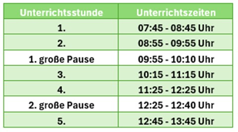 Reguläre Unterrichtszeiten